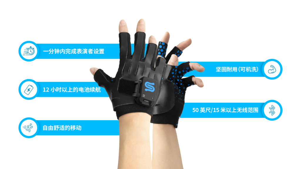工作室手套配备16个传感器,可以捕捉逼真且富有表现力的手部动态,使您能够通过真实的角色吸引观众。